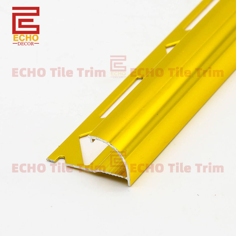 تم تصميم ملف تعريف تقليم البلاط من الألومنيوم الذهبي على شكل أنف الثور لإعطاء حواف البلاط لمسة نهائية ناعمة ومستديرة مع حمايتها من الرقائق والتلف. بفضل لمسته النهائية الذهبية الأنيقة، لا يعزز تقليم الحواف هذا على شكل أنف الثور متانة البلاط فحسب، بل يضيف أيضًا لمسة من الفخامة إلى الجدران والأرضيات وأسطح العمل وتركيبات البلاط الزخرفية.